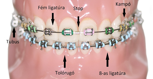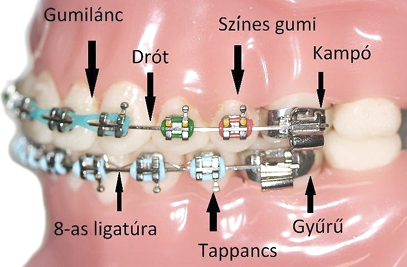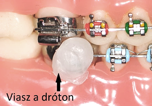 Egyes fogakat rögzíthetünk gumi helyett fém ligatúrával. Ha a fémhuzal kilóg vagy szúrja a nyálkahártyát.